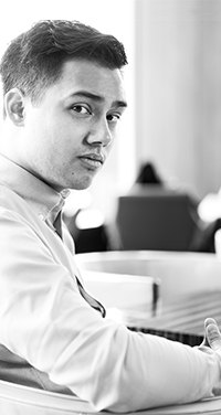 幼少からエレクトーンを学び、14歳で作曲家になると決意、ピアノに転向。恩師達の導きで、米バークリー音楽大学に留学、映画音楽&ジャズ作曲学科卒。